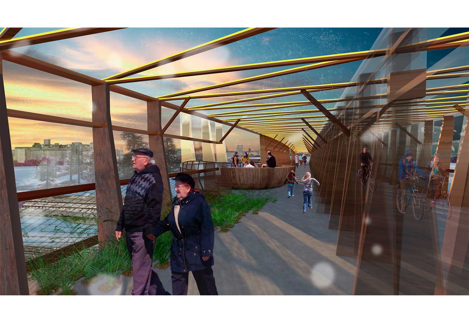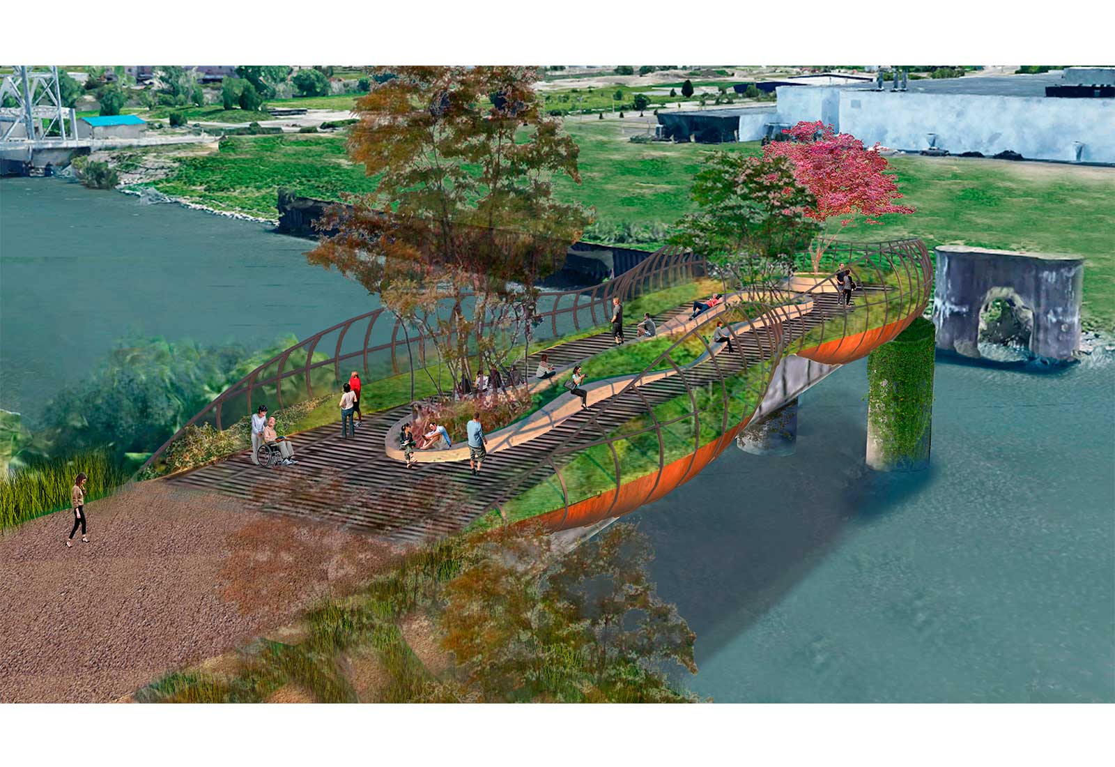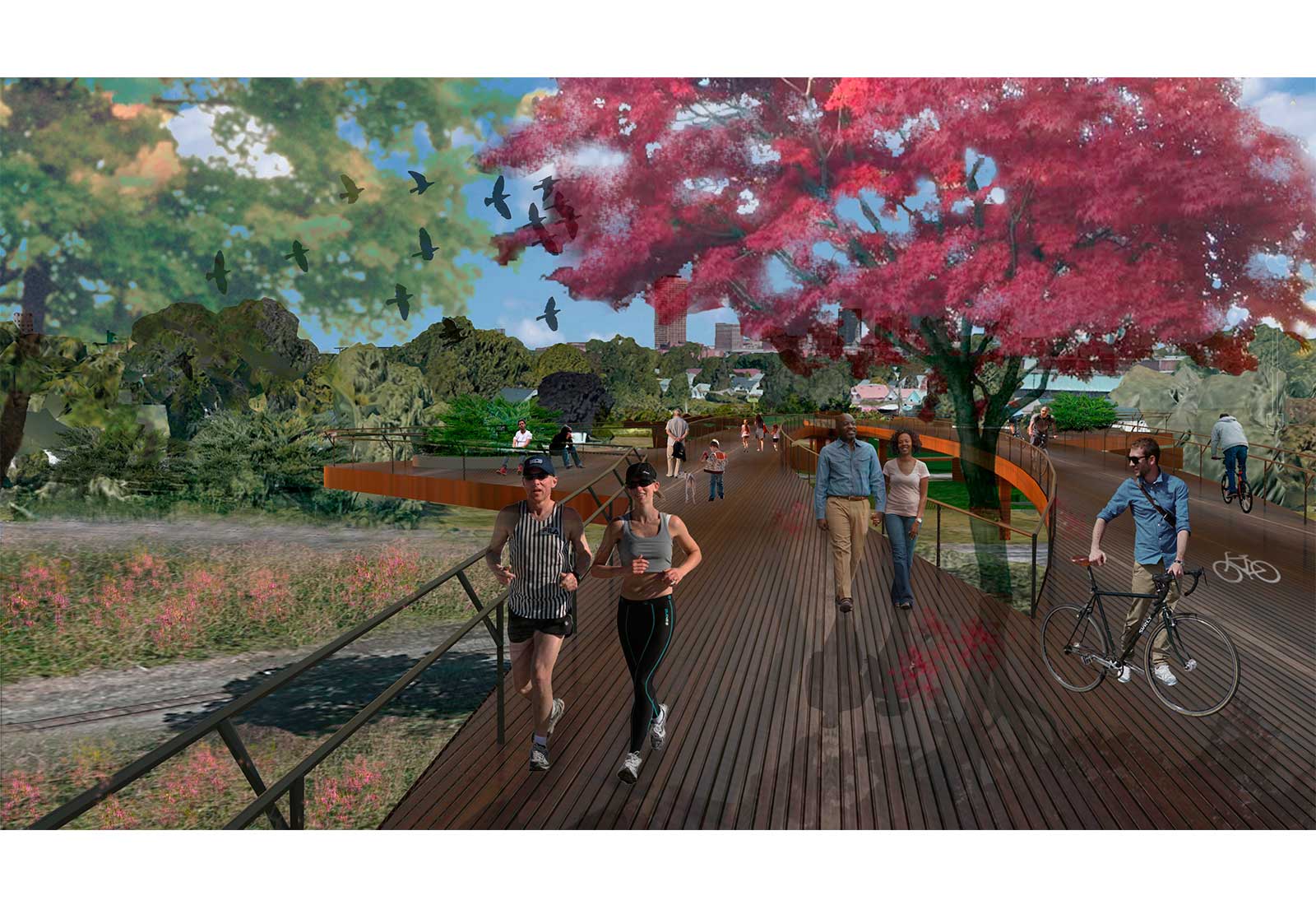 The Buffalo Glow Trail is a linear public park that accentuates the serene nature, vibrant history, and active lifestyle in the City of Light. The trail exists at the intersection of natural and industrial landscapes, allowing the visitor to walk, bike or ski the same path that trains once traveled. The Glow Trails illumination will highlight the landscape at night, with historical information about Buffalos prominence in the spread of hydroelectricity and artificial light. It will be a memorable botanical experience and urban amenity, day and night.