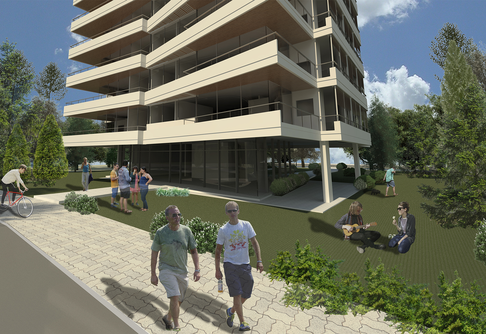 Ubicado en la localidad en Pinamar, region costera del pais, es un edificio destinado a la renta turistica. Cuenta con estrategias de sostenibilidad pasiva asi como la proteccion de todos los laterales del edificio de la radiacion solar a partir de extensos balcones y el tratamiento de la fachada y la ventilacion 100% natural.